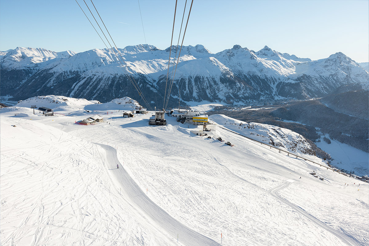 A funicular runs from the village of St. Moritz to the Chantarella middle station. In addition, a cable car from St. Moritz Bad and a gondola lift from Celerina go right up to the slopes. All three valley stations have parking and can be reached by bus. In Suvretta and Salastrains, you can take the chairlift to get to the slopes. If you happen to be stationed in Samedan, take the bus to Celerina and take the gondola from there. At the last valley descent, it branches off with the ski bus to Samedan.